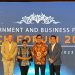 Matheos Tan penuh semangat dalam menyerahkan SK secara simbolis kepada tiga perwakilan tenaga PPPK yang terpilih dalam formasi tenaga Guru dan Tenaga Teknis tahun 2022.
