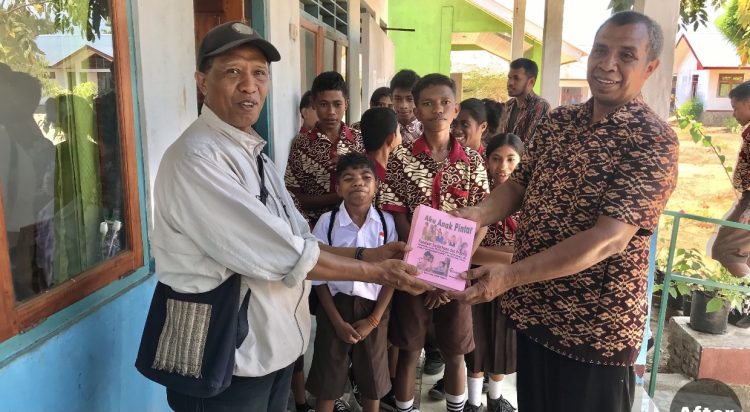 Buku ‘Panduan sederhana dan praktis membantu anak TK/PAUD dan SD, mahir menguasai huruf dan kata’. Buku yang ditulis Gerardy Tukan itu diserahkan sebanyak 25 eksemplar kepada siswa-siswi SLB Negeri Tunagrahita C Nubatukan.
