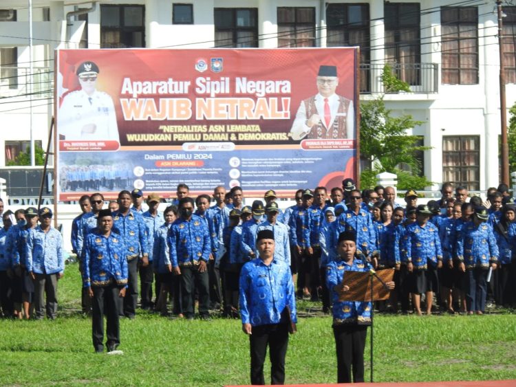 Semua ASN lingkup Pemerintah Kabupaten Lembata terlihat hadir dan mengikuti Apel Terpadu dengan penuh hikmat.