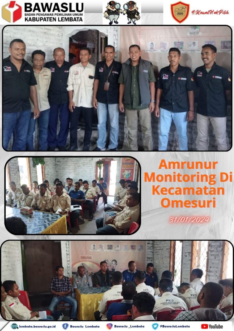 AKSARANEWS.NET, LEMBATA – Hari Ke 2 Monitoring dan Evaluasi persiapan pengawasan pemungutan dan perhitungan suara, kampanye serta logistik bagi Pengawas Pemilu di Kabupaten Lembata,  Anggota Bawasu  Provinsi Nusa Tenggara Timur, Amrunur Muh. Darwan memberikan penguatan kepada pengawas adhoc di Kecamatan Omesuri dan Buyasuri, Rabu (31/01).