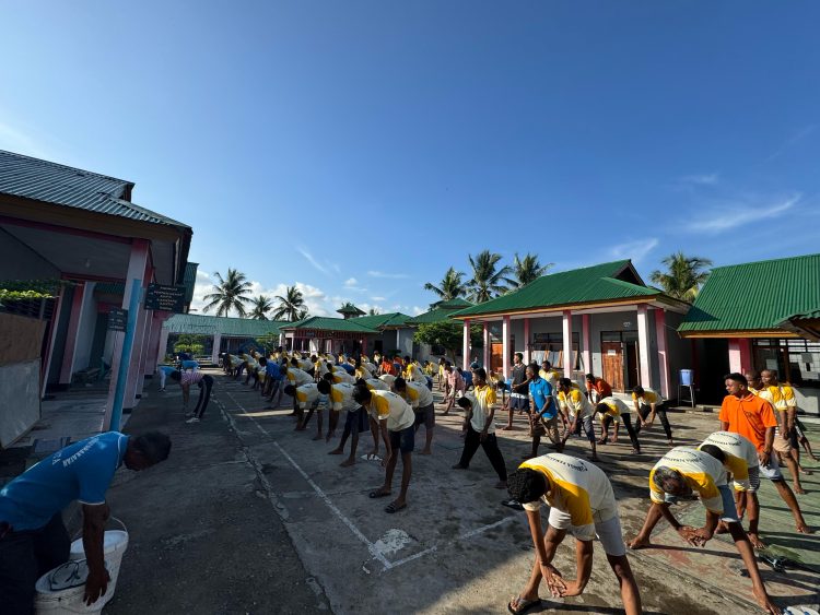 Di bawah pengawasan Kasubsi Keamanan dan Ketertiban, Joanes C. Pati yang juga merangkap Plt. Kasubsi Pembinaan gelar senam pagi bersama warga binaan Lapas Lembata. Jumat (23/02).