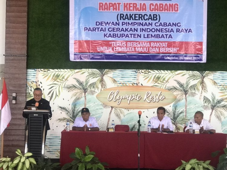 Rakercab DPC Partai Gerindara Lembata kali ini mengusung tema “Terus Bersama Rakyat Untuk Lembata Maju dan Bersih”