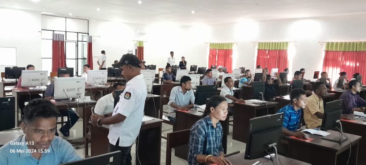 Para Peserta Test CAT Bagi Calon PPK Yang Melakukan Ujian di Gedung Laboratoriun Komputer BKPSDMD Kabupaten Lembata. Senin (06/05).