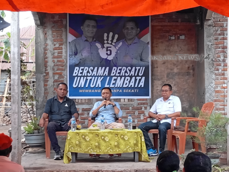LEMBATA, AKSARANEWS. NET – Calon Bupati dan Wakil Bupati Lembata Periode 2024-2029 dari paket MANIS, Marsianus Jawa dan Paskalis Laba melakukan kampanye terbatas bersama masyarakat Lamahora, Kelurahan Lewoleba Timur. Sabtu (05/10/10).