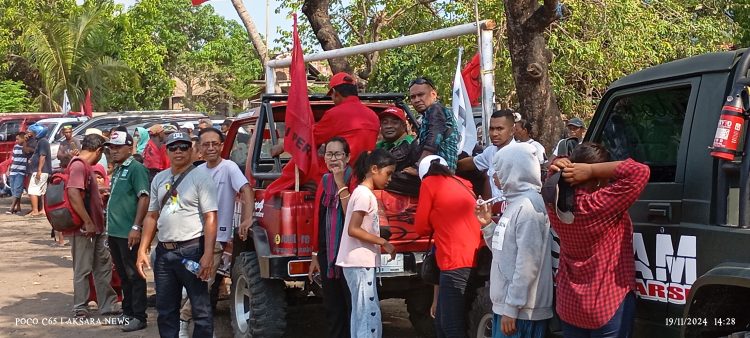 LEMBATA, AKSARA NEWS. NET – Simoen Lake dan Marsianus Zada Ua Calon Bupati dan Wakil Bupati Lembata periode 2024-2029 terharu melihat para pendukungnya berbondong-bondong ke lapangan Misi Lewoleba guna menyaksikan kampanye Akbar Paket SALAM. Selasa, (19/11/2024).