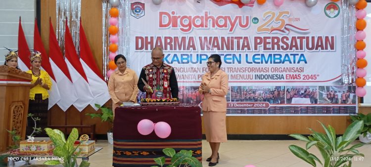 LEWOLEBA, AKSARANEWS.NET – Penjabat Bupati Lembata, Paskalis Ola Tapi Bali hadiri acara peringatan Hari Ulang Tahun Dharma Wanita Persatuan (DWP) ke 25 Tahun 2024 tingkat Kabupaten Lembata dengan mengangkat tema, “Penguatan Fondasi Transformasi Organisasi Dharma Wanita Persatuan Menuju Indonesia Emas 2045”, dilaksanakan di ruang aula kantor Bupati Lembata. Jumat, 13 Desember 2024.