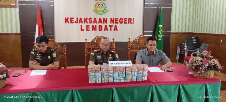 LEMBATA, AKSARANEWS.NET – Kejaksaan Negeri Lembata melalui Seksi Tindak Pidana Khusus telah melakukan penyetoran uang hasil tindak pidana korupsi dalam perkara Tindak Pidana Korupsi Paket Pekerjaan Peningkatan Jalan Sp. Lerahinga – Sp. Banitobo (Segmen Lerahinga – Banitobo-Lamalela) pada Dinas Pekerjaan Umum dan Penataan Ruang Kabupaten Lembata Tahun Anggaran 2022. Kamis, (06/11/2025).