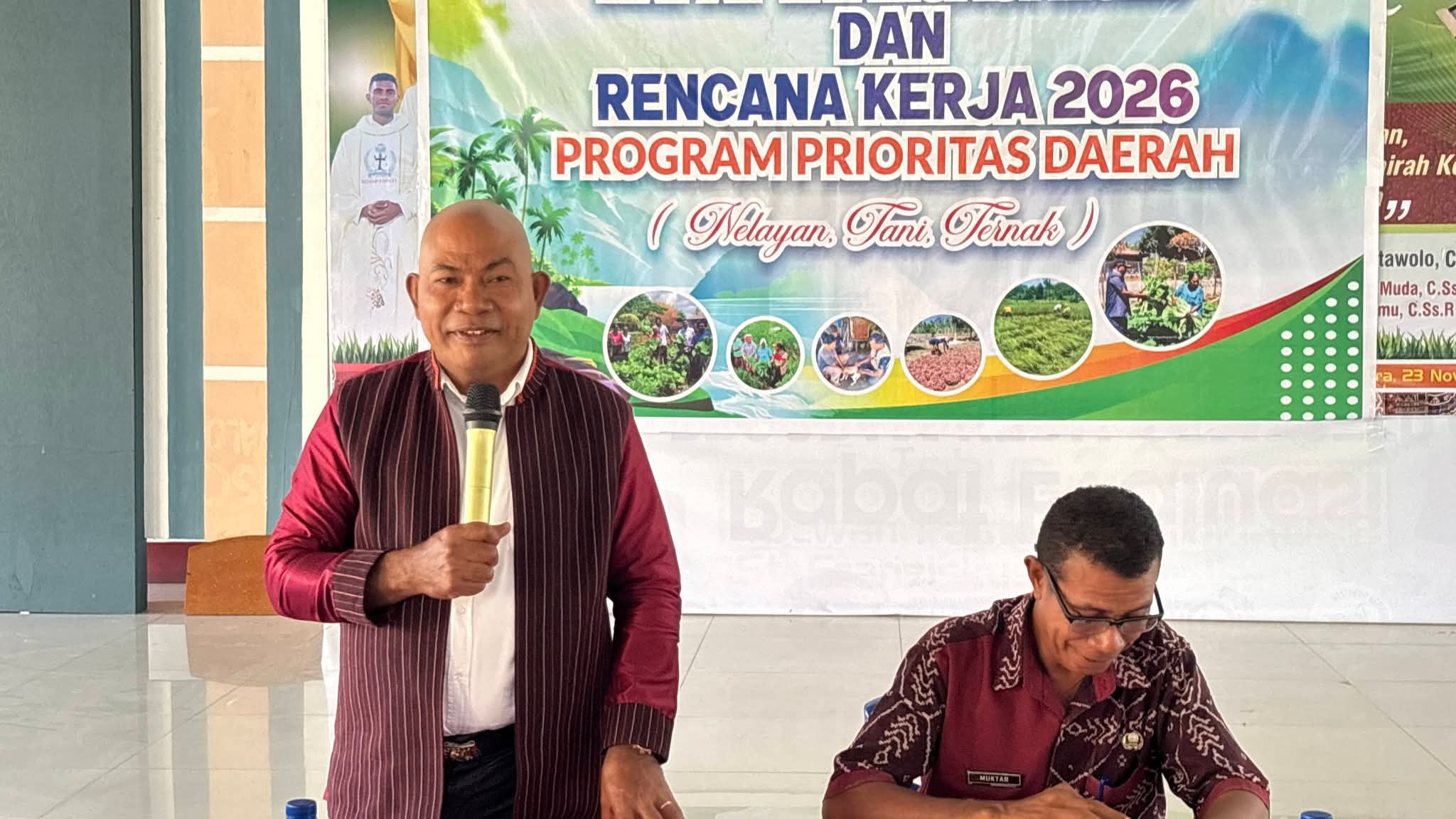LEWOLEBA, AKSARANEWS.NET – Bupati Lembata, Petrus Kanisius Tuaq, secara resmi membuka Rapat Evaluasi Pelaksanaan Program Prioritas Daerah Tahun 2025 dan Rencana Kerja Tahun 2026 dalam bingkai Nelayan–Tani–Ternak (NTT). Kegiatan ini berlangsung pada Rabu, 18 Desember 2025, bertempat di Aula Gereja Katolik Paroki St. Fransiskus Asisi, Lamahora.