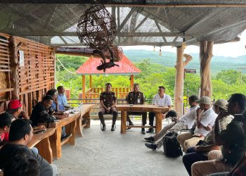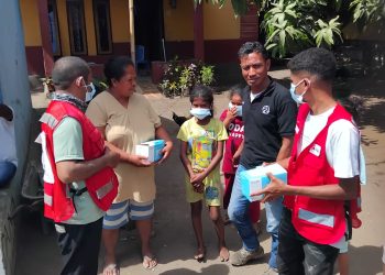 Tergerak, Forum Jurnalis Lembata dan PMI Bagi Masker di Zona Terdampak Erupsi Ile Lewotolok